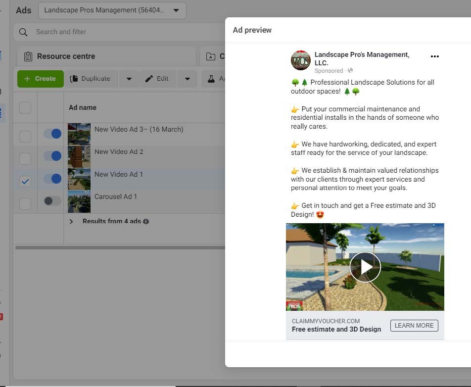 We set up a Facebook Conversion Ad campaign optimized for leads as the client wanted to show ads to potential landscaping leads on social media.